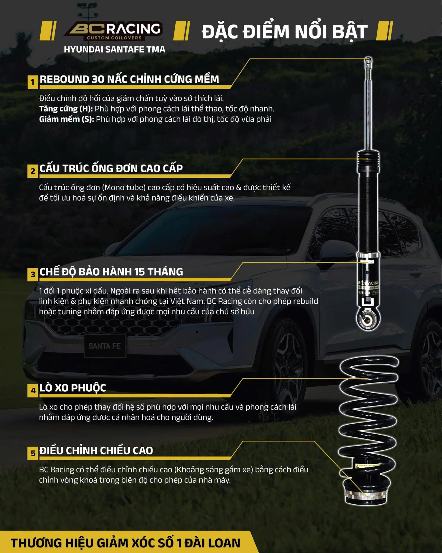 HUYNDAI SANTAFE TMA (CẶP PHUỘC SAU) & BC RACING